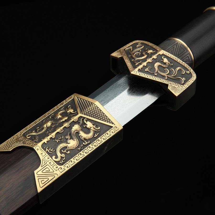 - Key features: han dynasty, real chinese swords, damascus steel, blackwood scabbard, handmade, full tang, hand forged, blade polished, sharpened, double edge sharp, premium fittings
