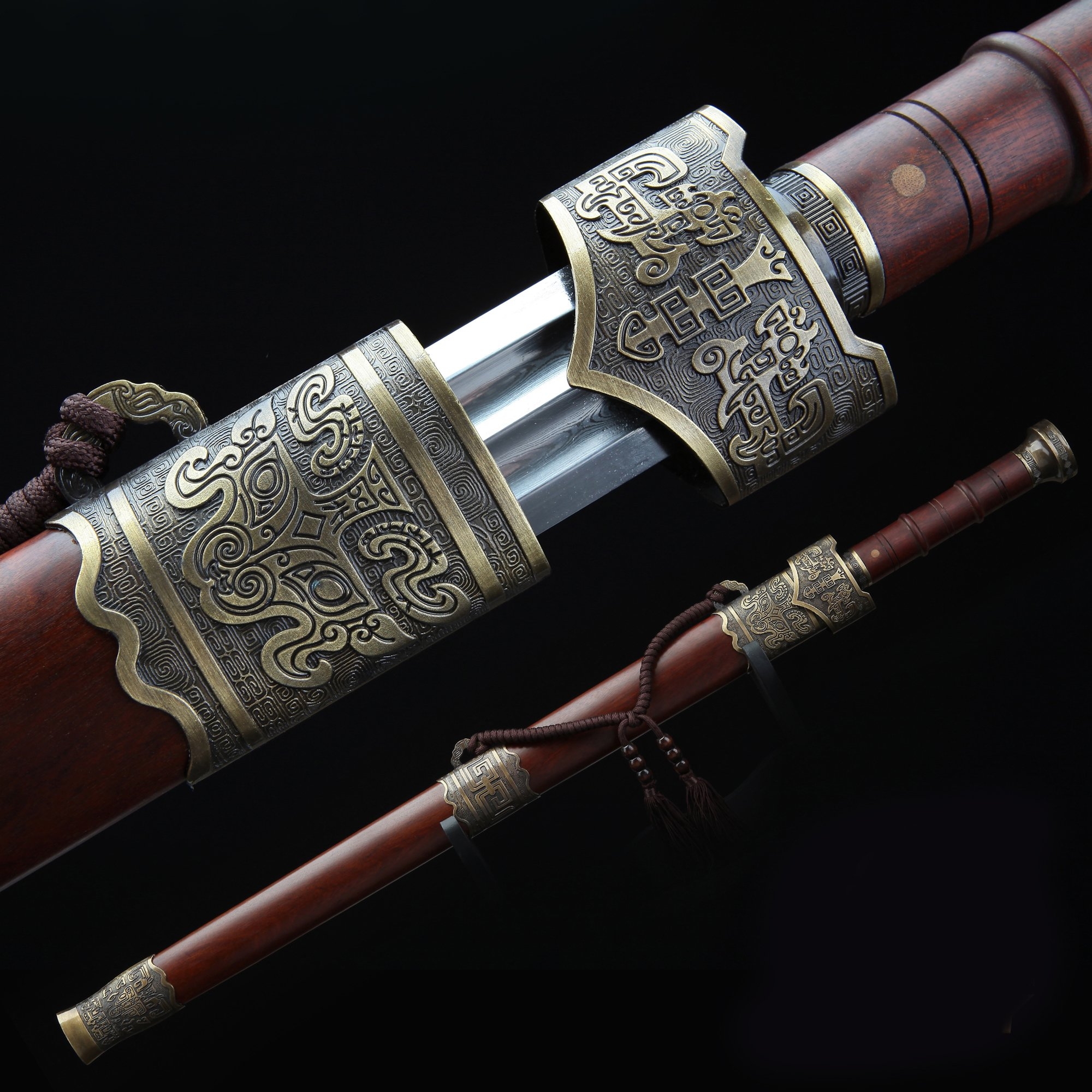 - Key features: han dynasty, real chinese swords, damascus steel, rosewood scabbard, handmade, full tang, blade polished, sharpened, double edge sharp, alloy fittings