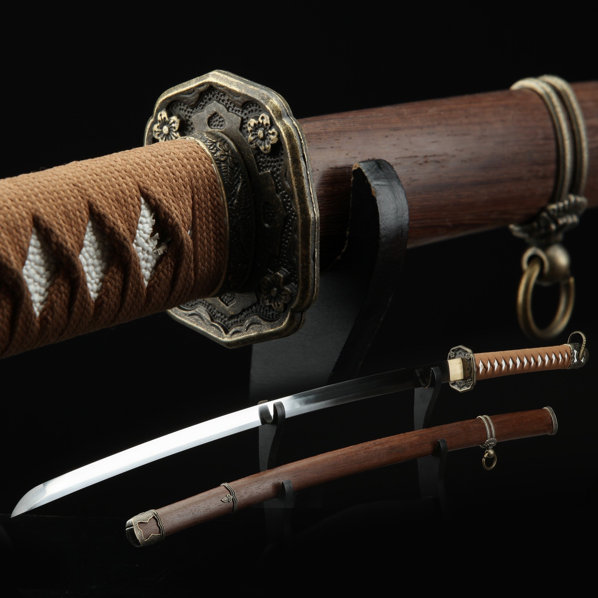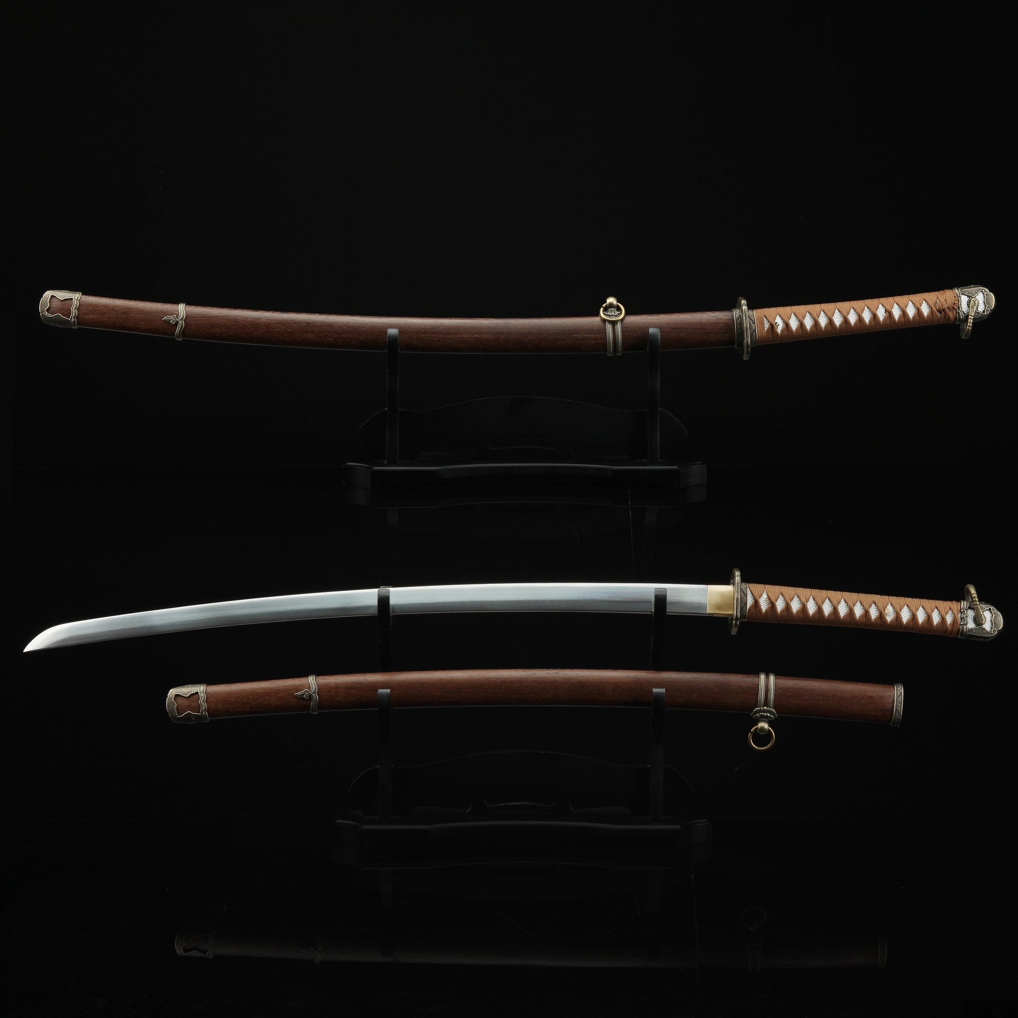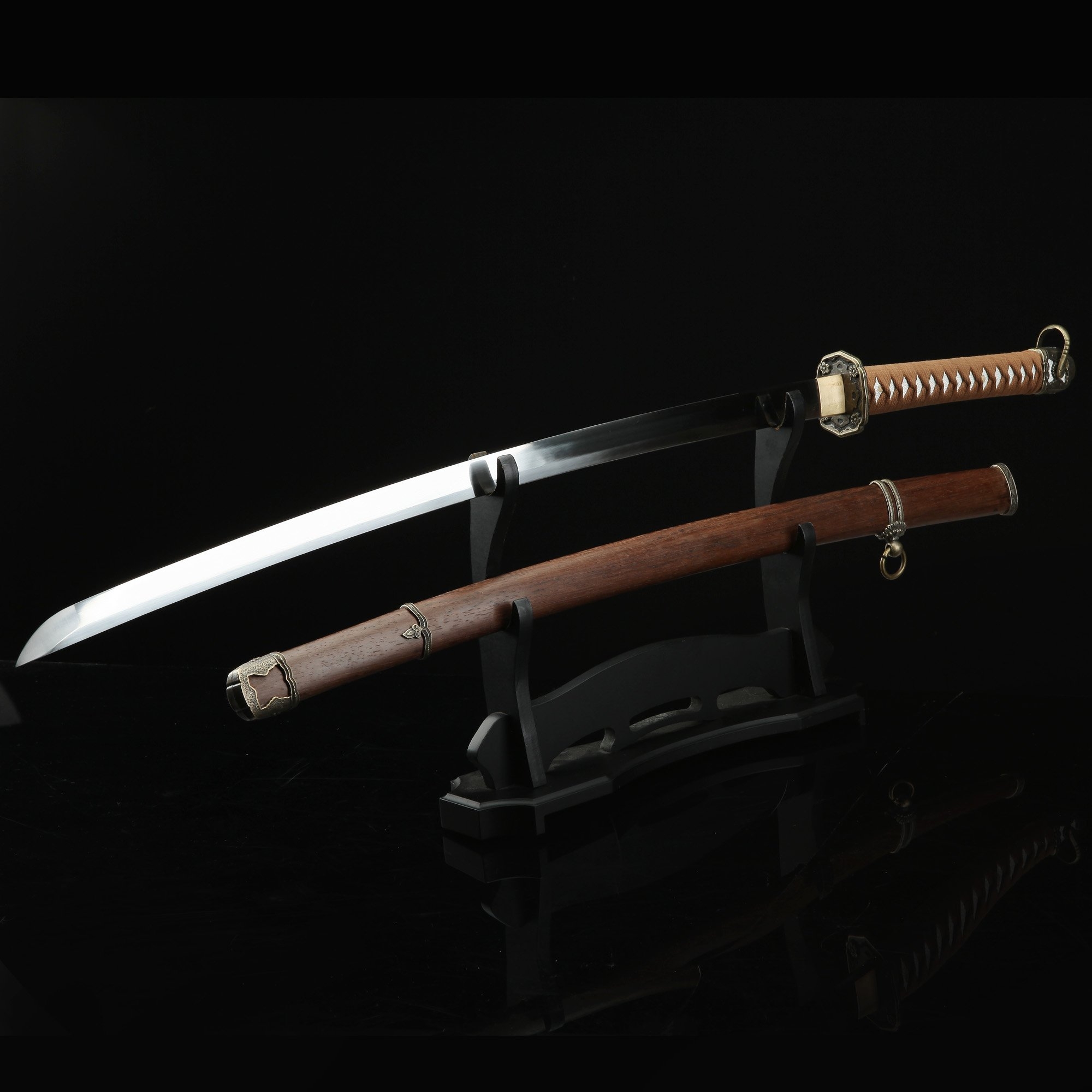 - Japanese army sword theme, hand forged carbon steel blade, has high performance hardness and flexibility.