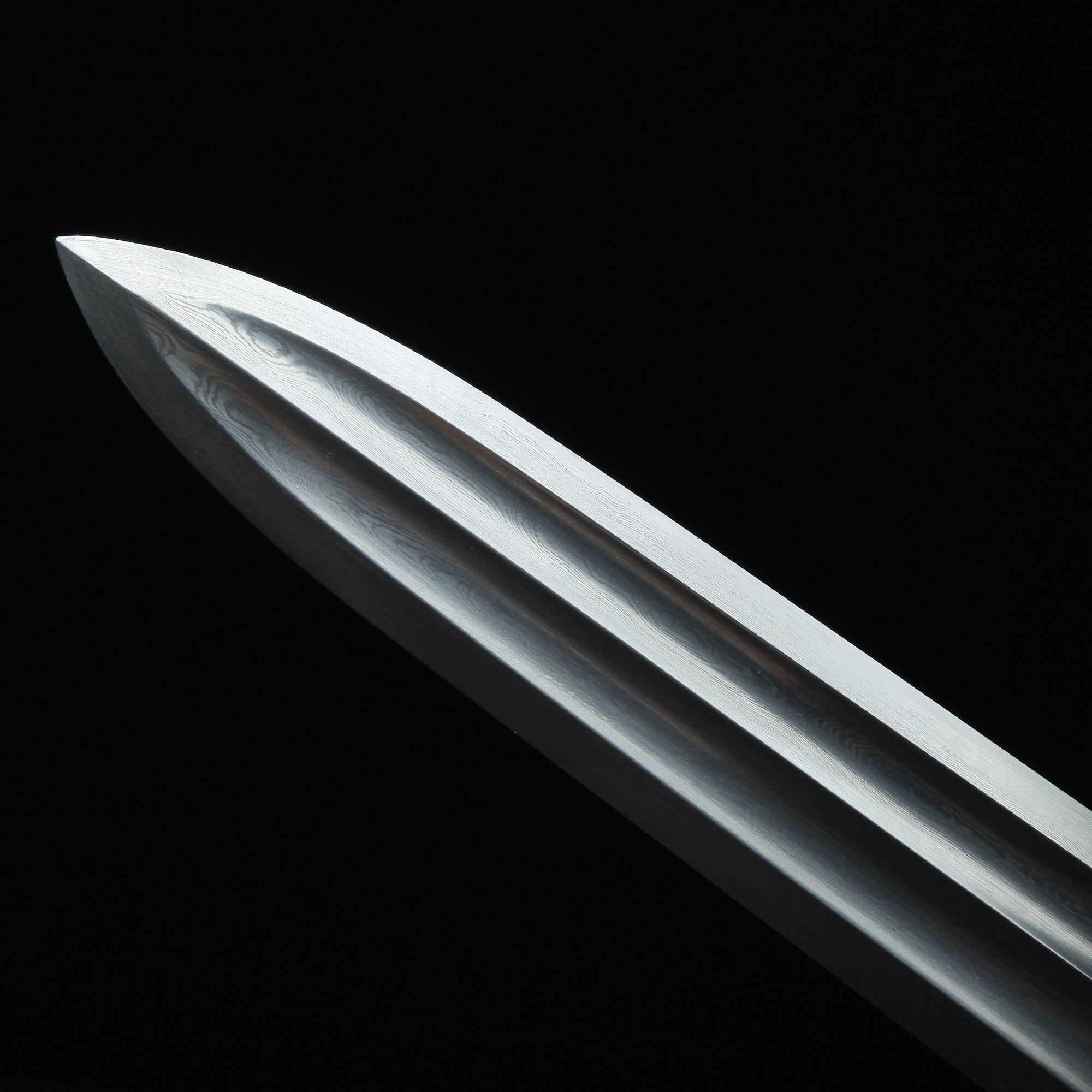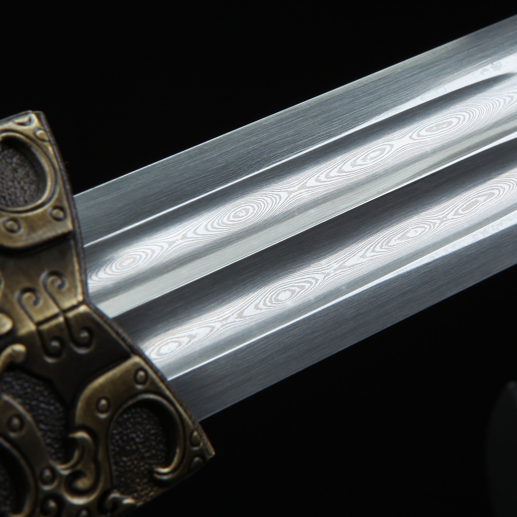 - Key features: real chinese swords, han dynasty, damascus steel, double edge sharp, handmade, full tang, hand forged, blade polished, sharpened, blackwood scabbard, alloy fittings