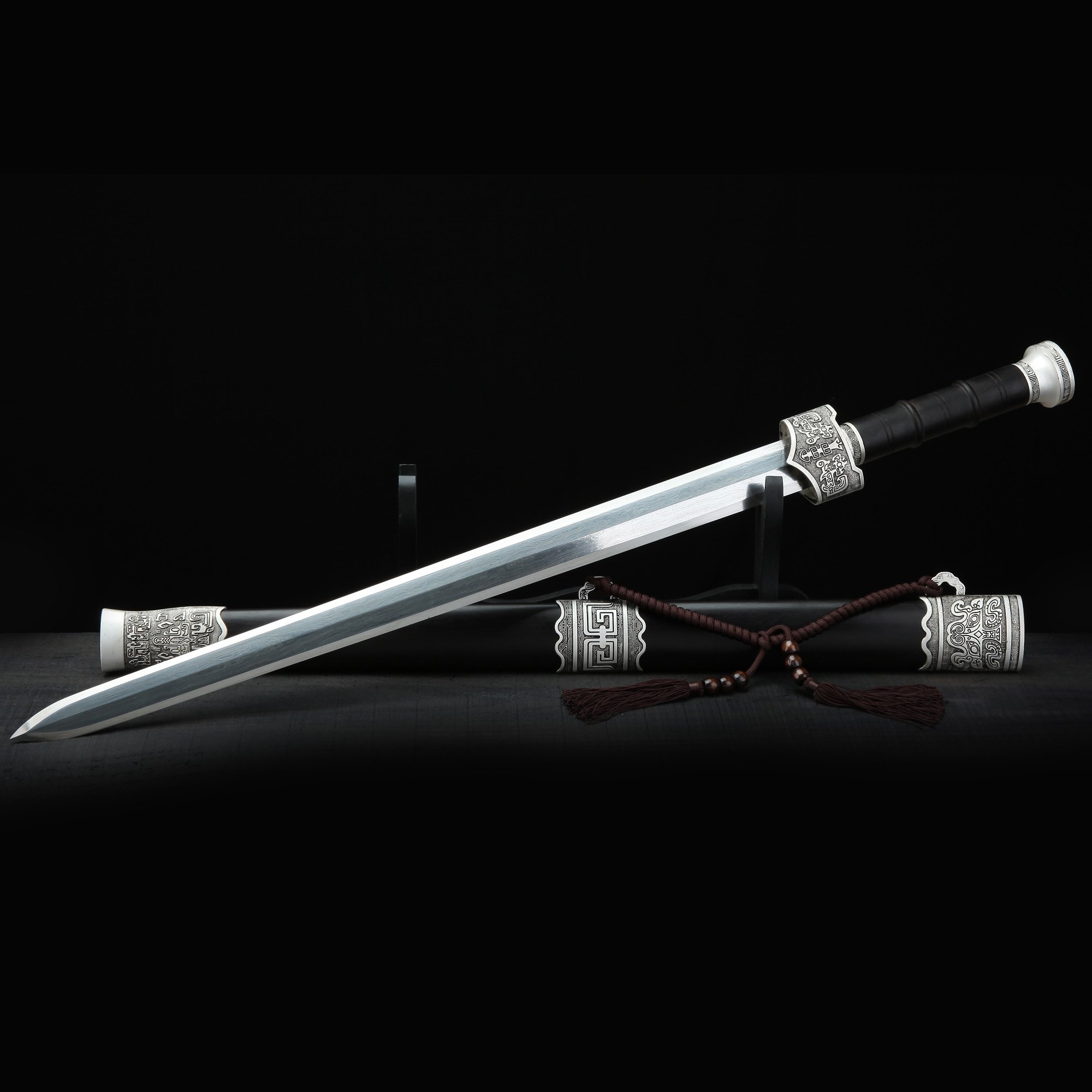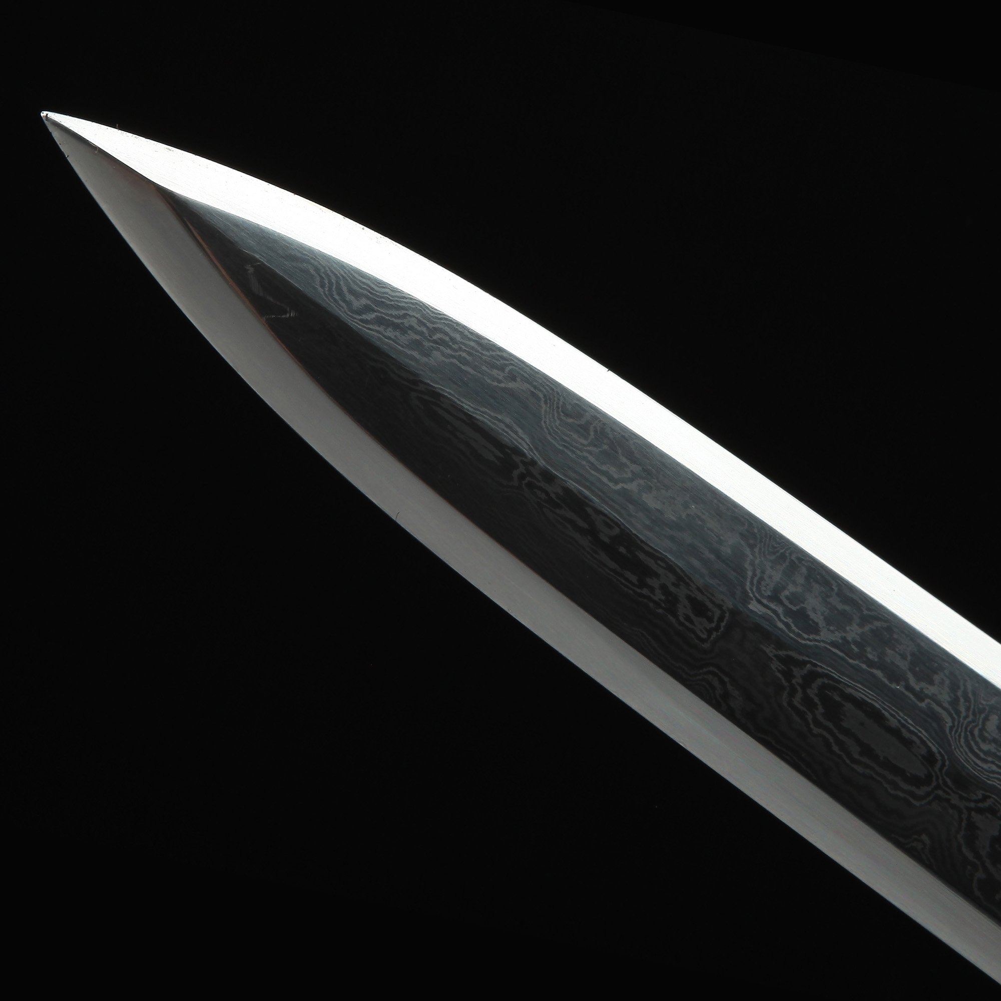 - Key features: real chinese swords, han dynasty, damascus steel, double edge sharp, handmade, full tang, hand forged, blade polished, sharpened, blackwood scabbard, alloy fittings