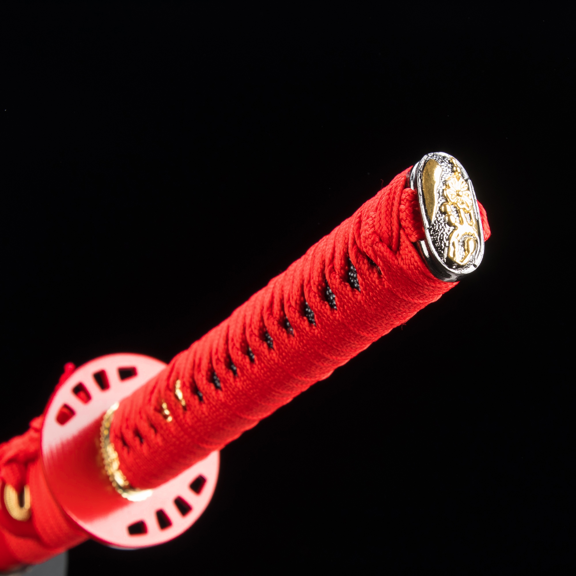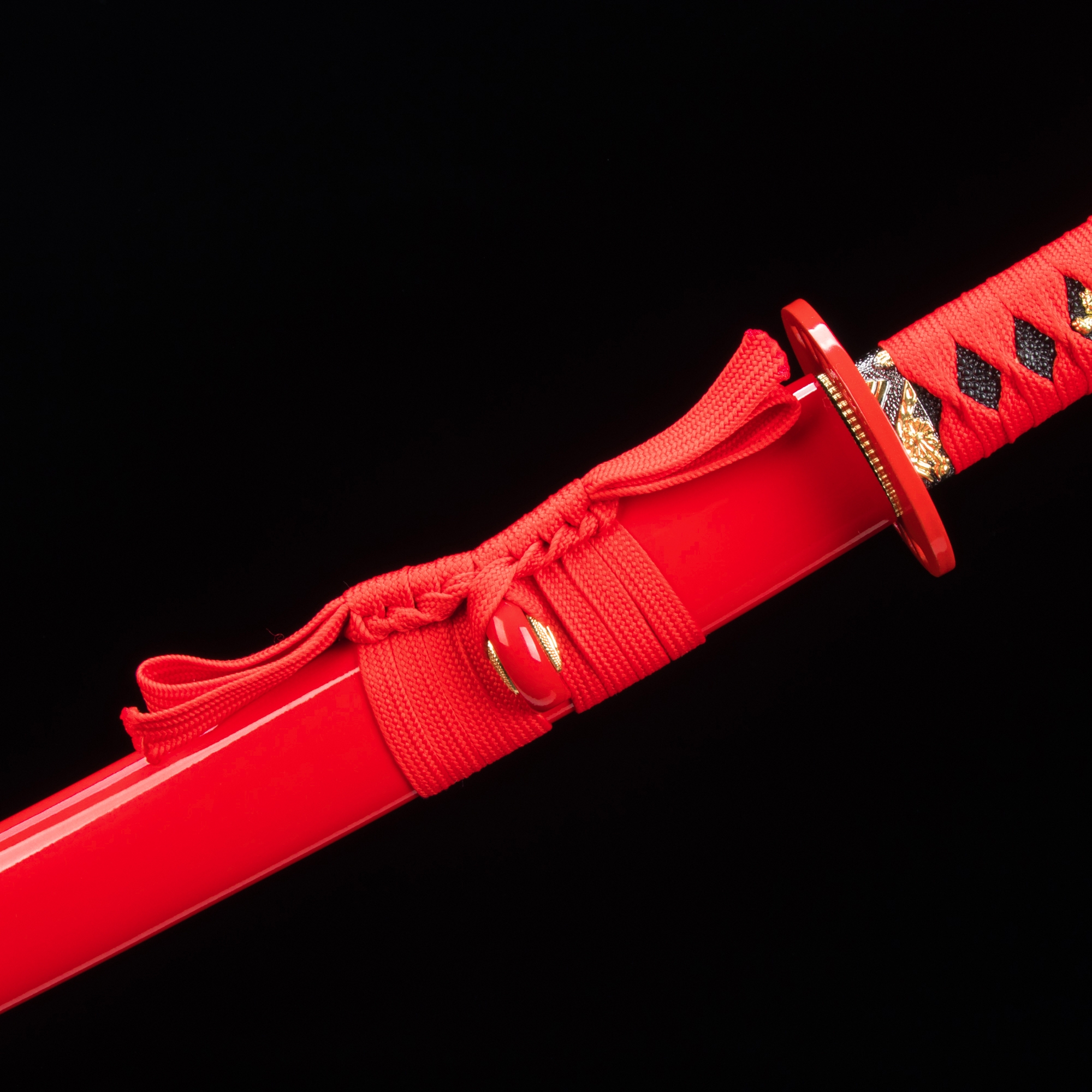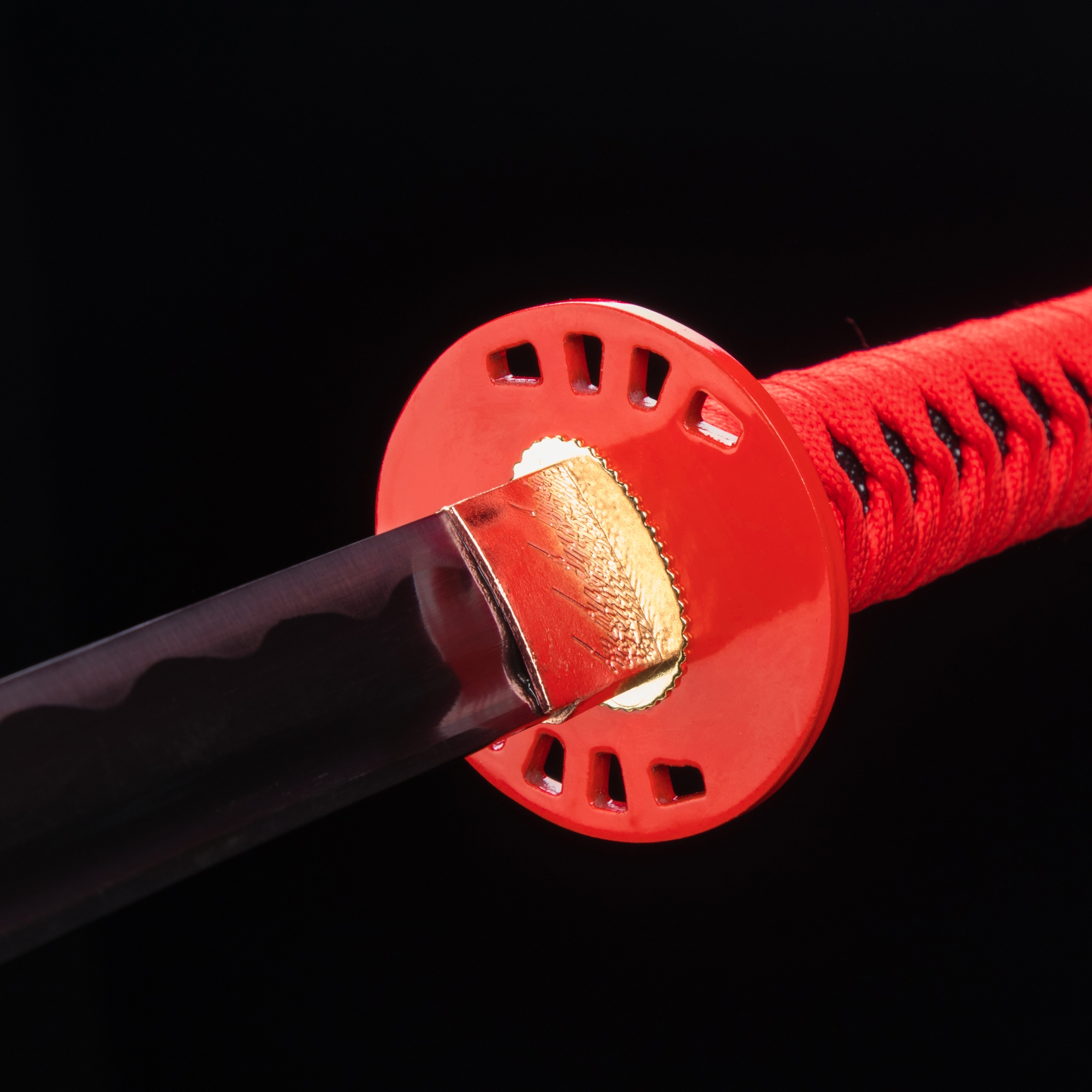 - Katana, red katana, blue blade, 1045 carbon steel, handmade, full tang, battle ready, sharpened, red scabbard, red cord handle, 40.5 inches, alloy fittings