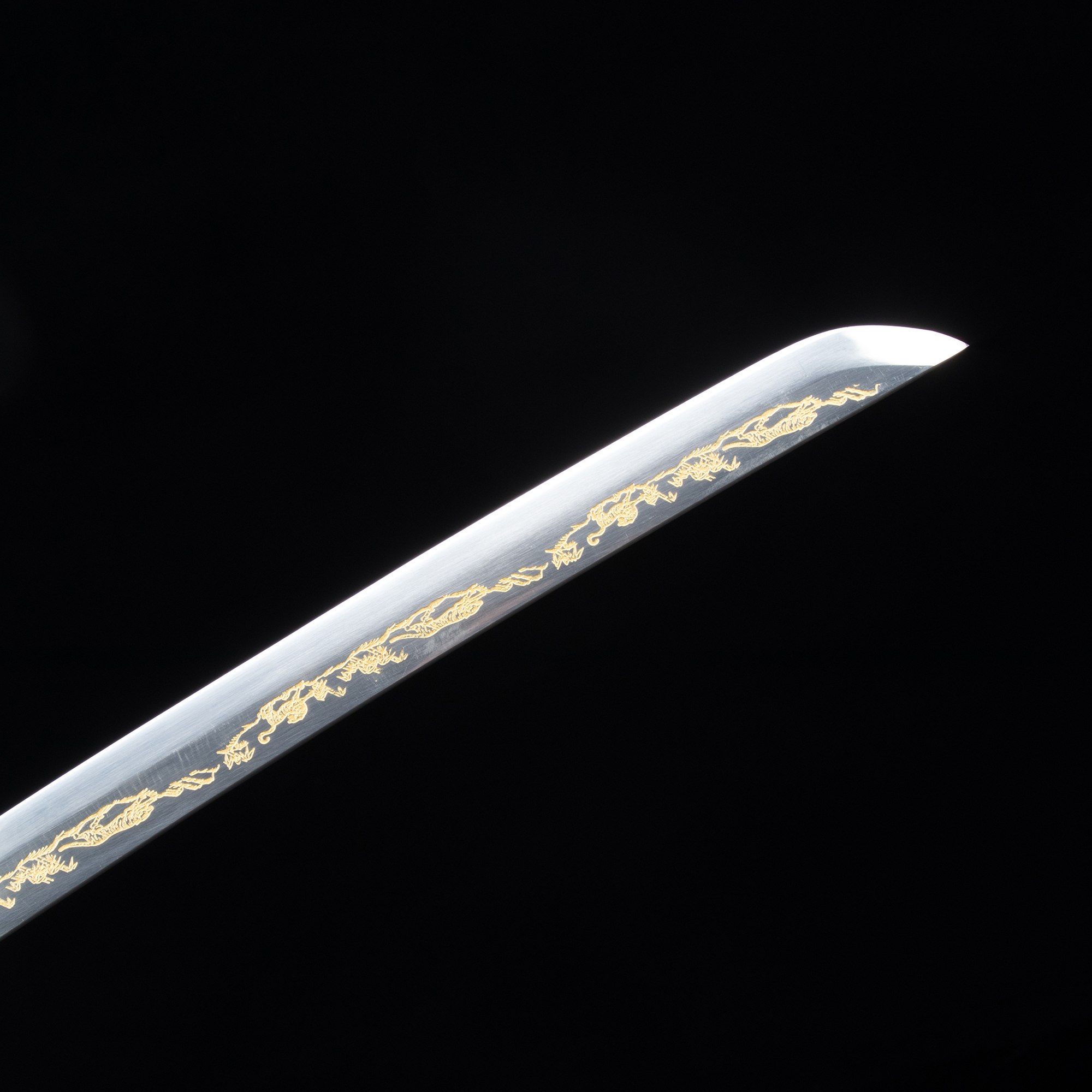 - 1060 carbon steel, blade carving, alloy tsuba, alloy fittings, matte scabbard, sharpened, katana, full tang, handmade, battle ready, blade polished, 40.5 inches