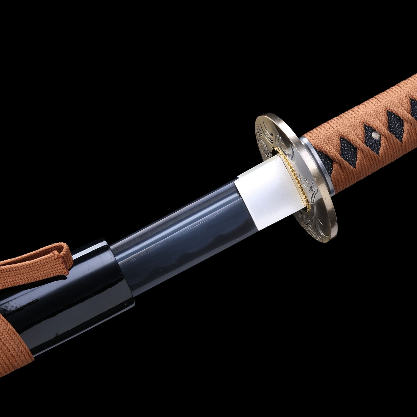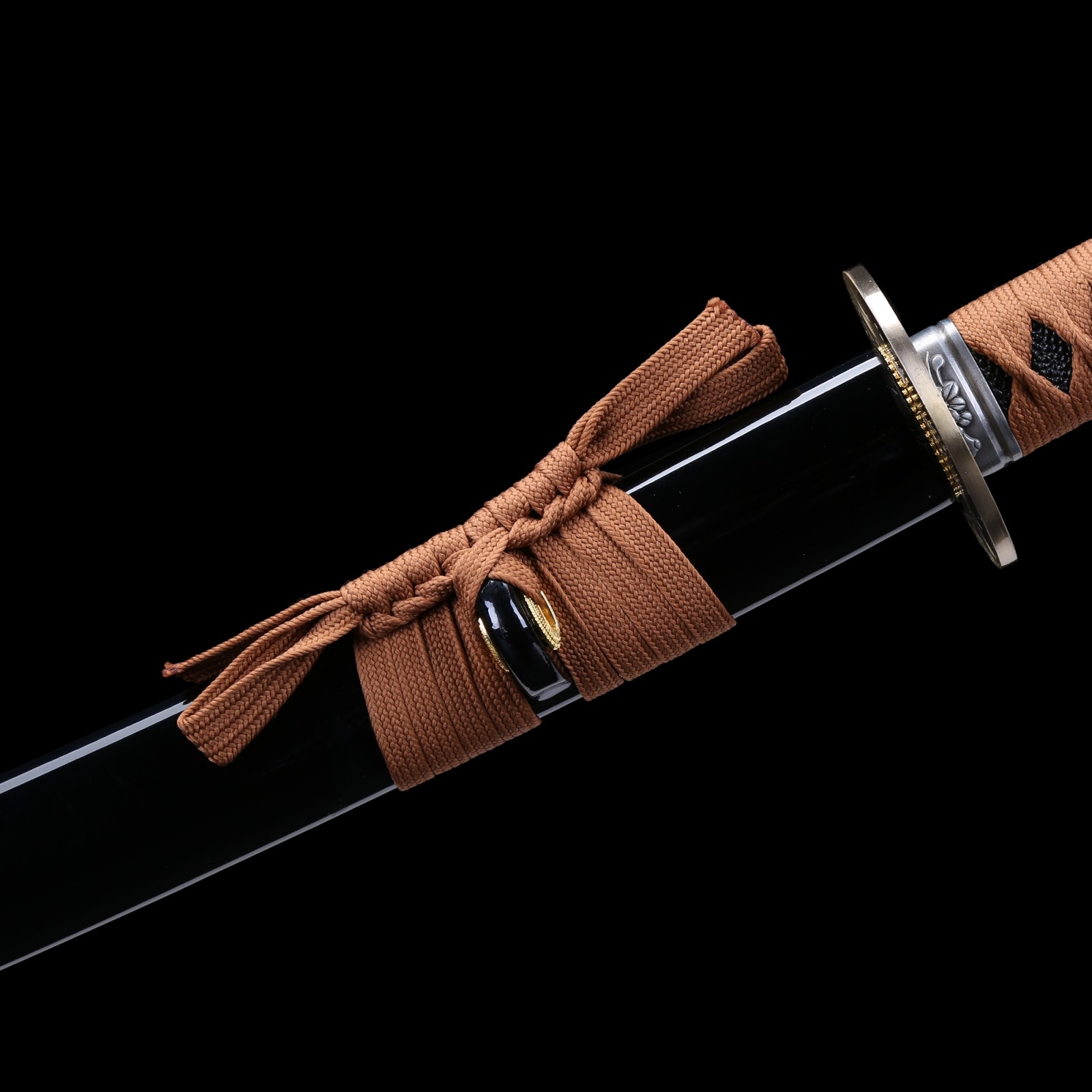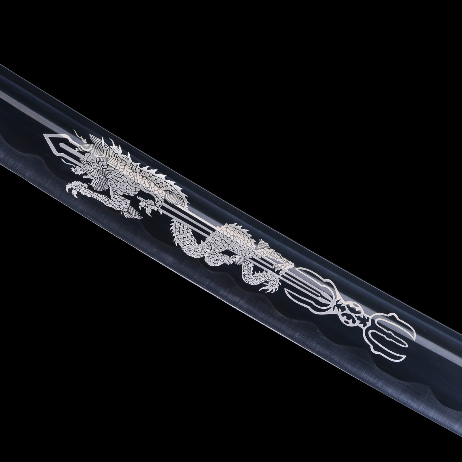 - Key features: black katana, blade carving, black blade, 1060 carbon steel, full tang, handmade, battle ready, sharpened, balck scabbard, alloy fittings