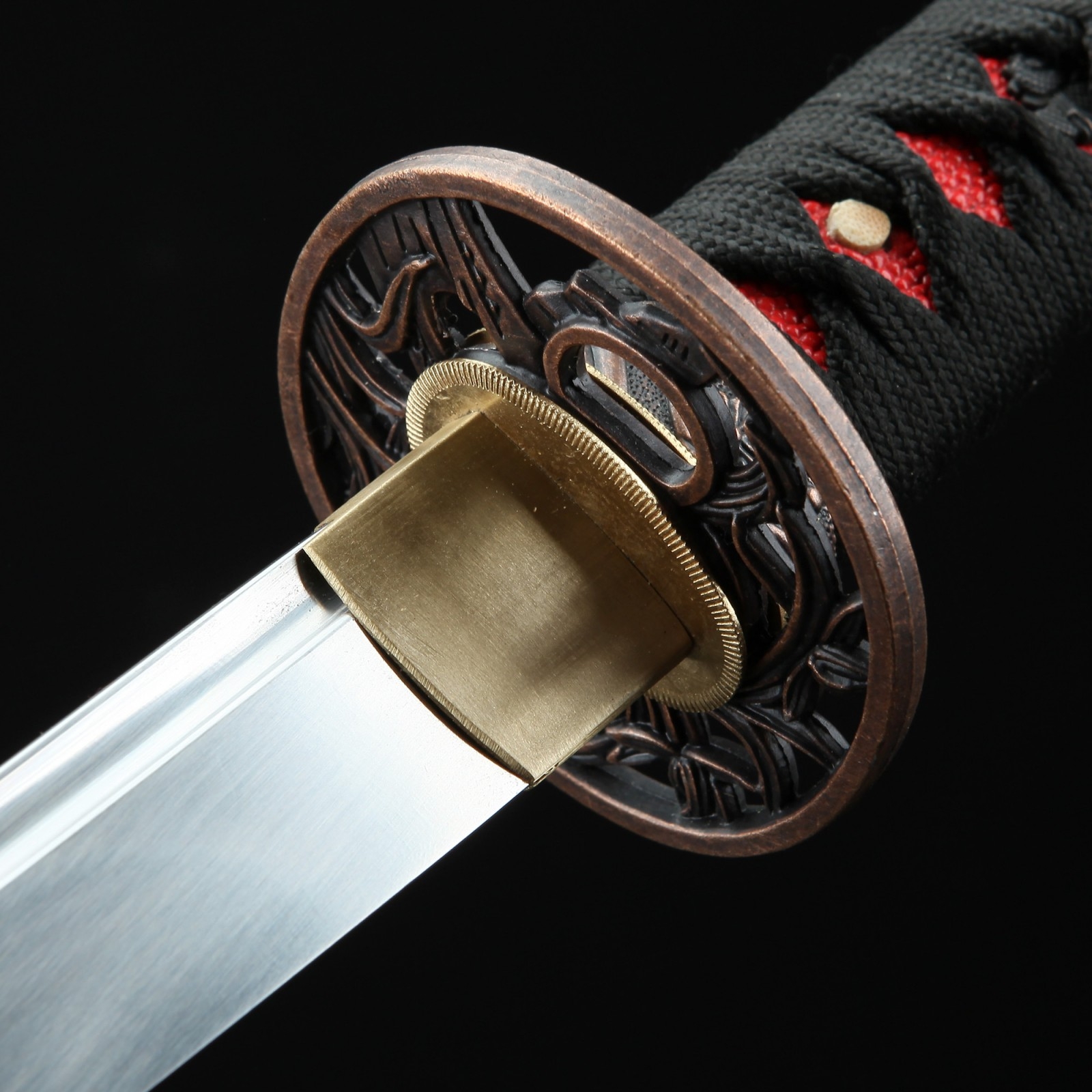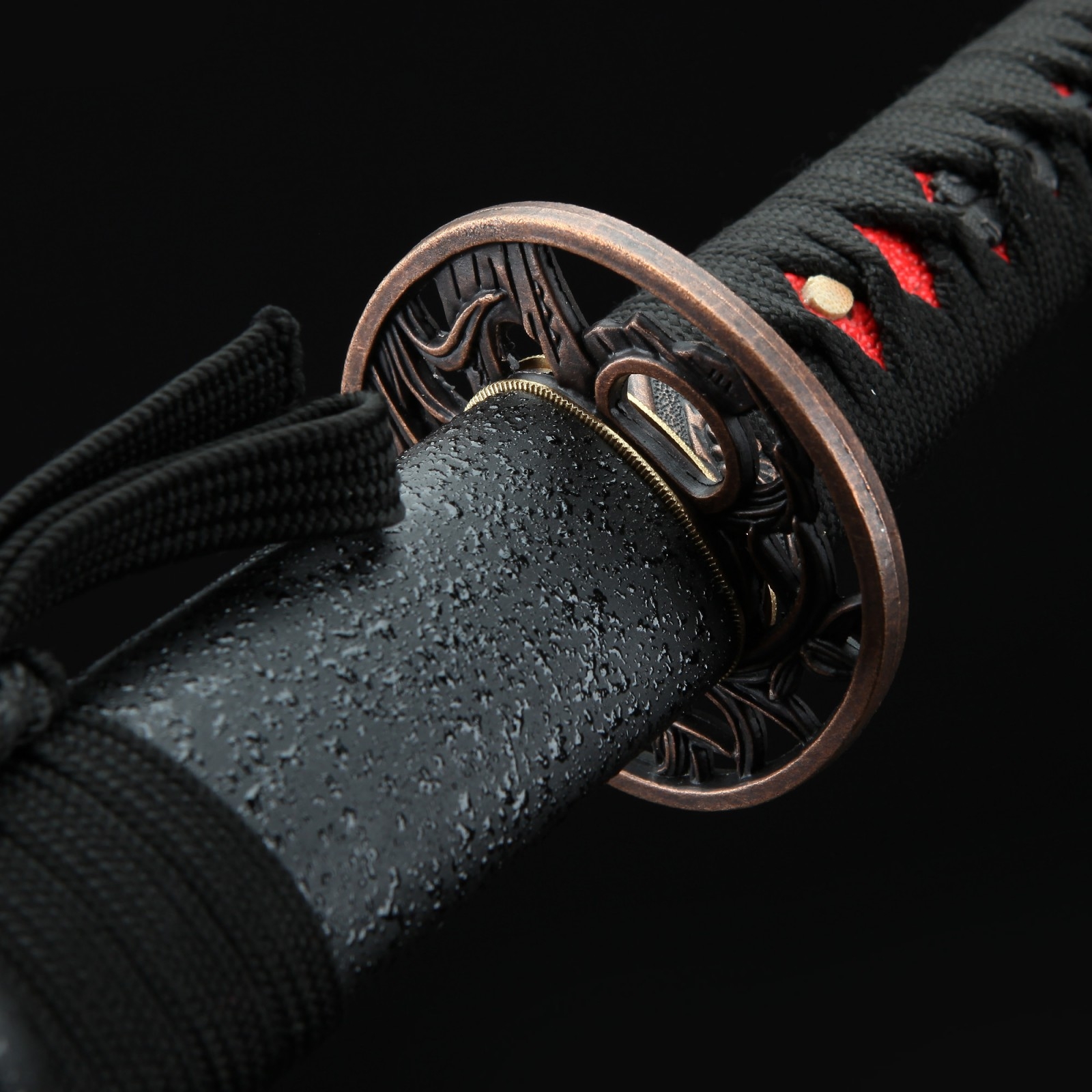 - Red ray skin, cotton cord wrapped handle, hand lacquered hardwood scabbard