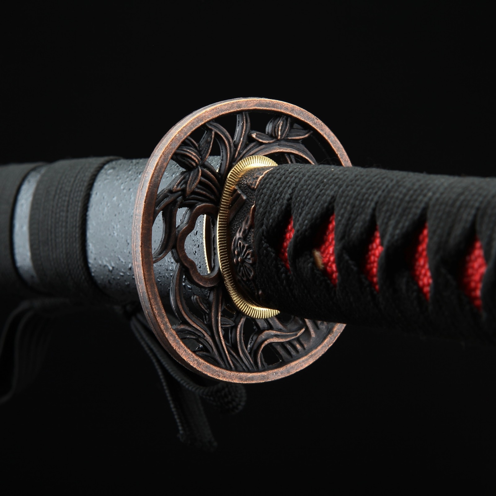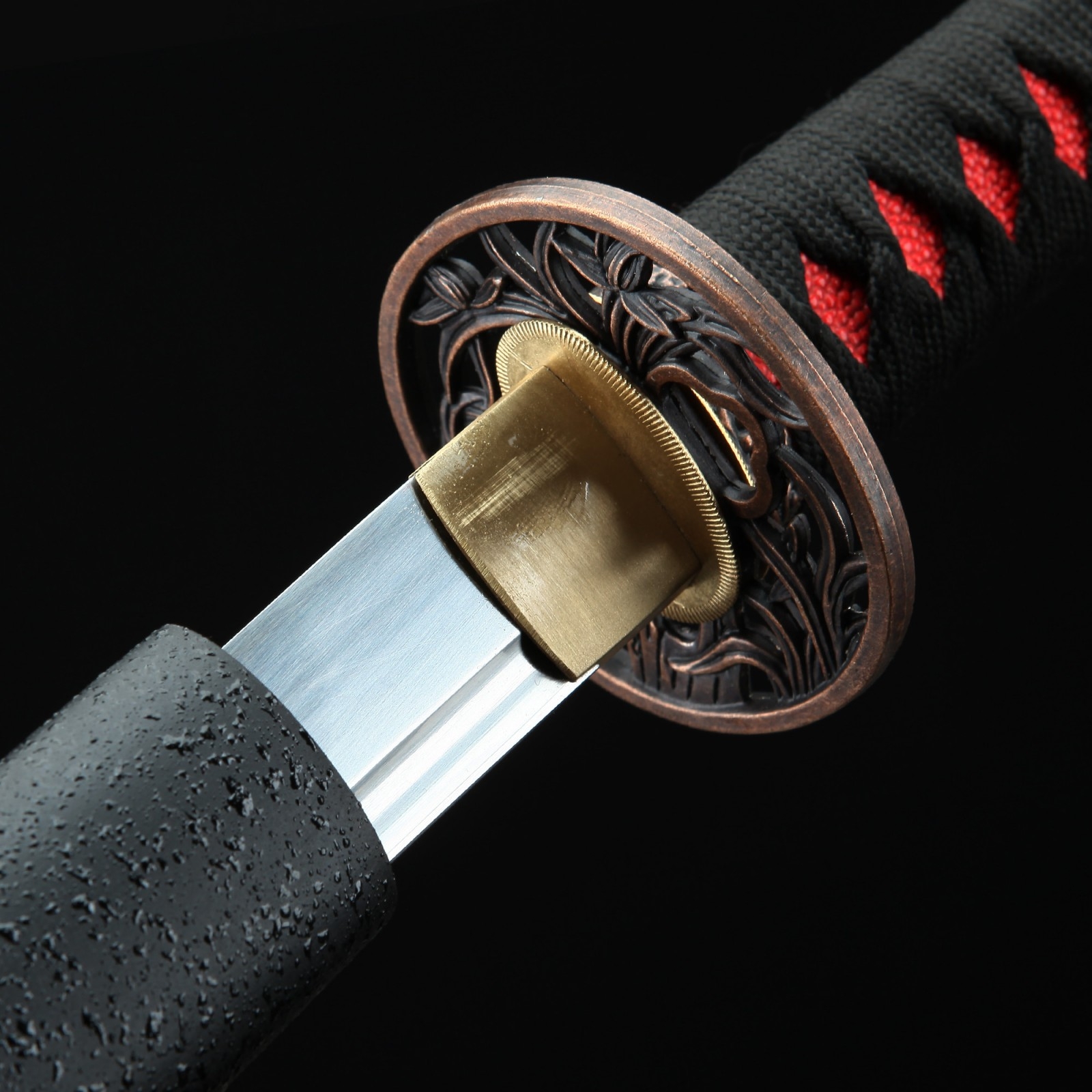 - Key features: katana, manganese steel, handmade, full tang, blade polished, sharpened, battle ready, black saya