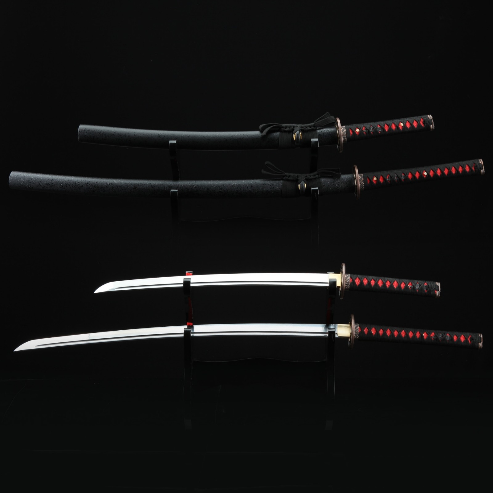 - Handmade katana and wakizashi set, manganese steel blade, hand polishing and hand sharpened.