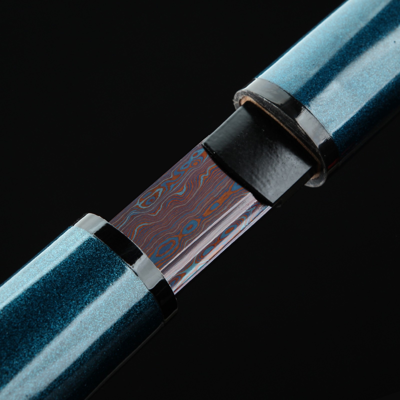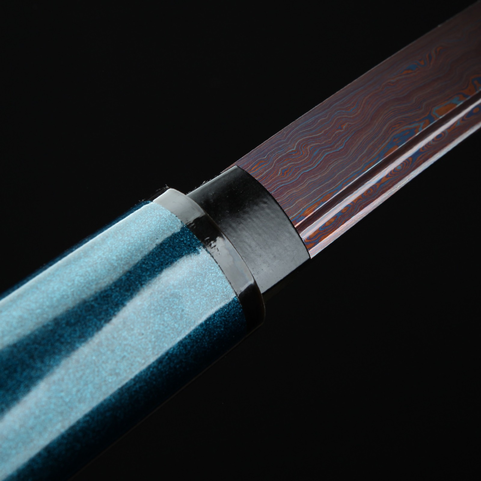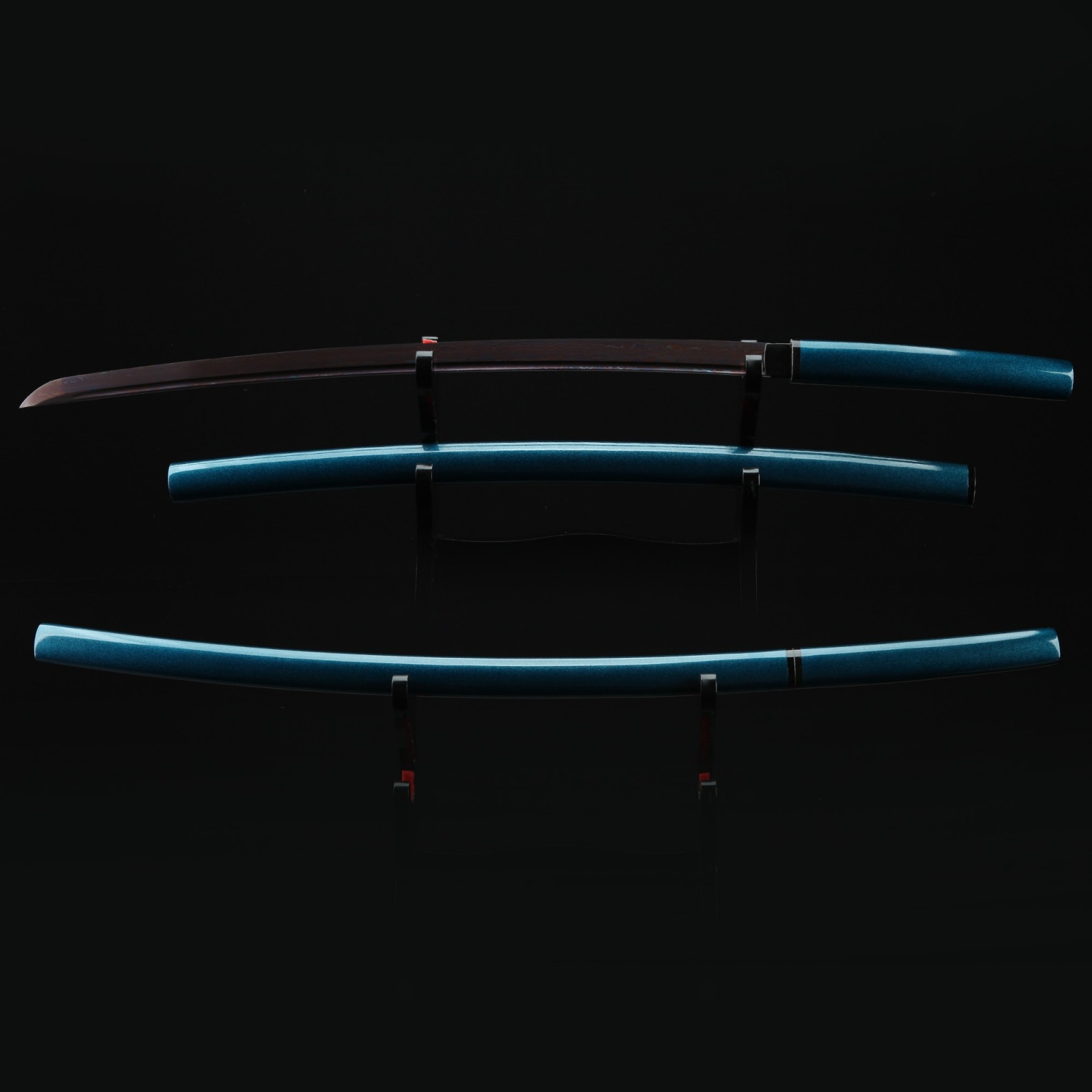 - Key features: shirasaya katana, damascus steel, red blade, blue saya, full tang, handmade, sharpened, battle ready, alloy fittings