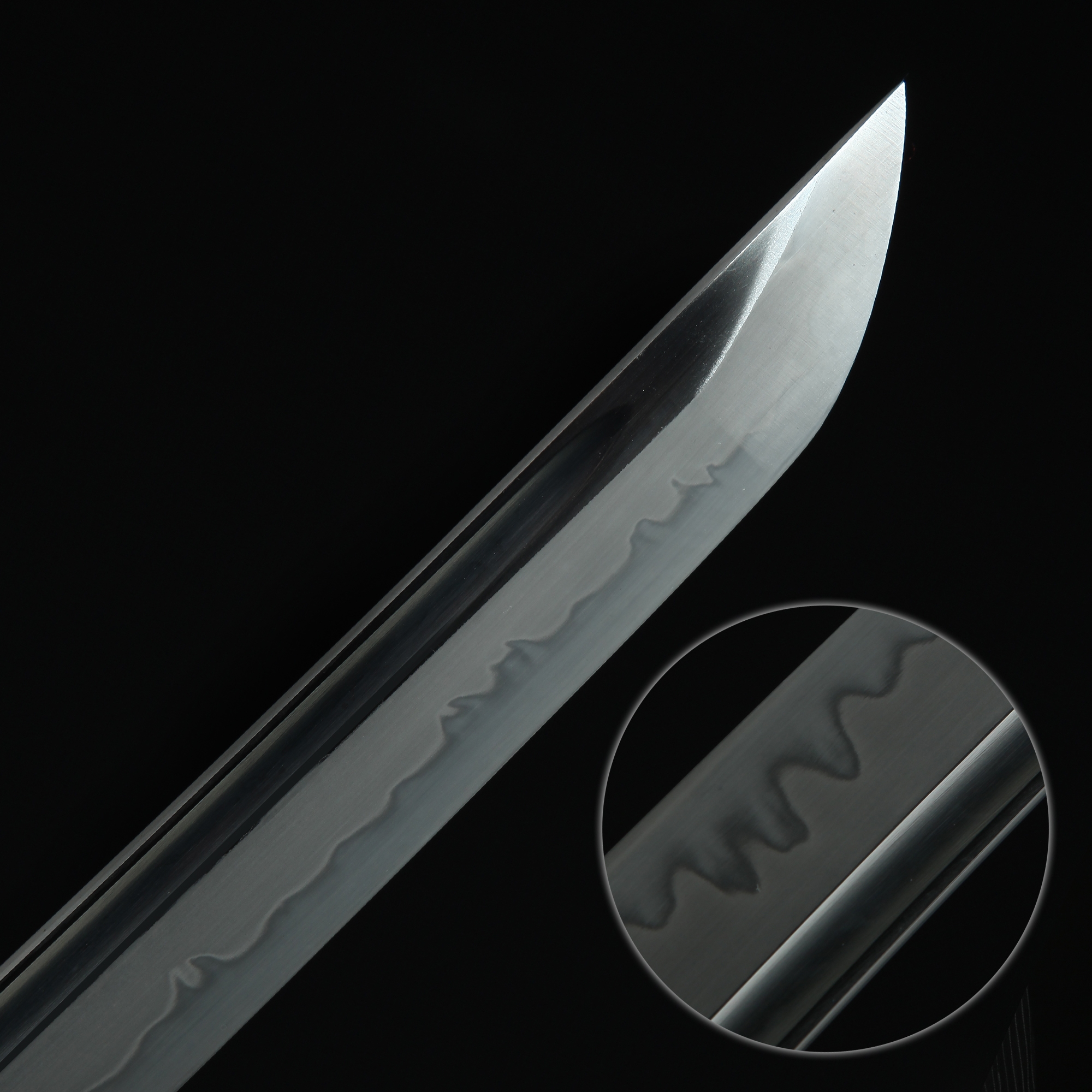 - Clay tempered to produce a real hamon line, clay tempering process with water quench.