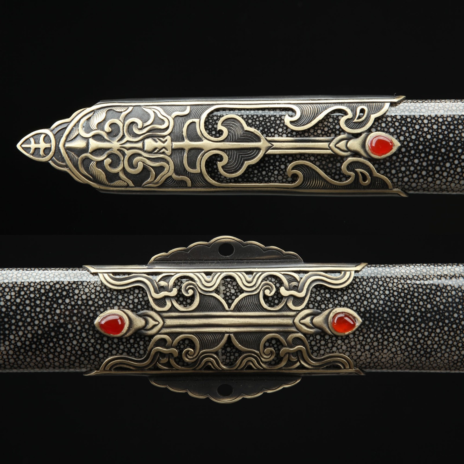 - Fully handmade real rayskin scabbard premium real gemstone fittings, handsome color scheme.