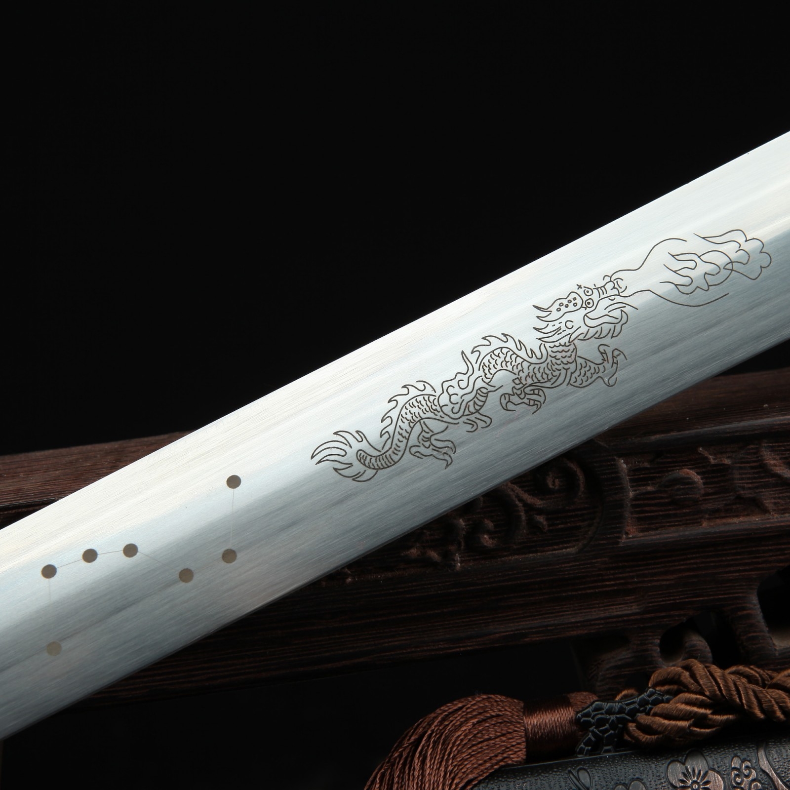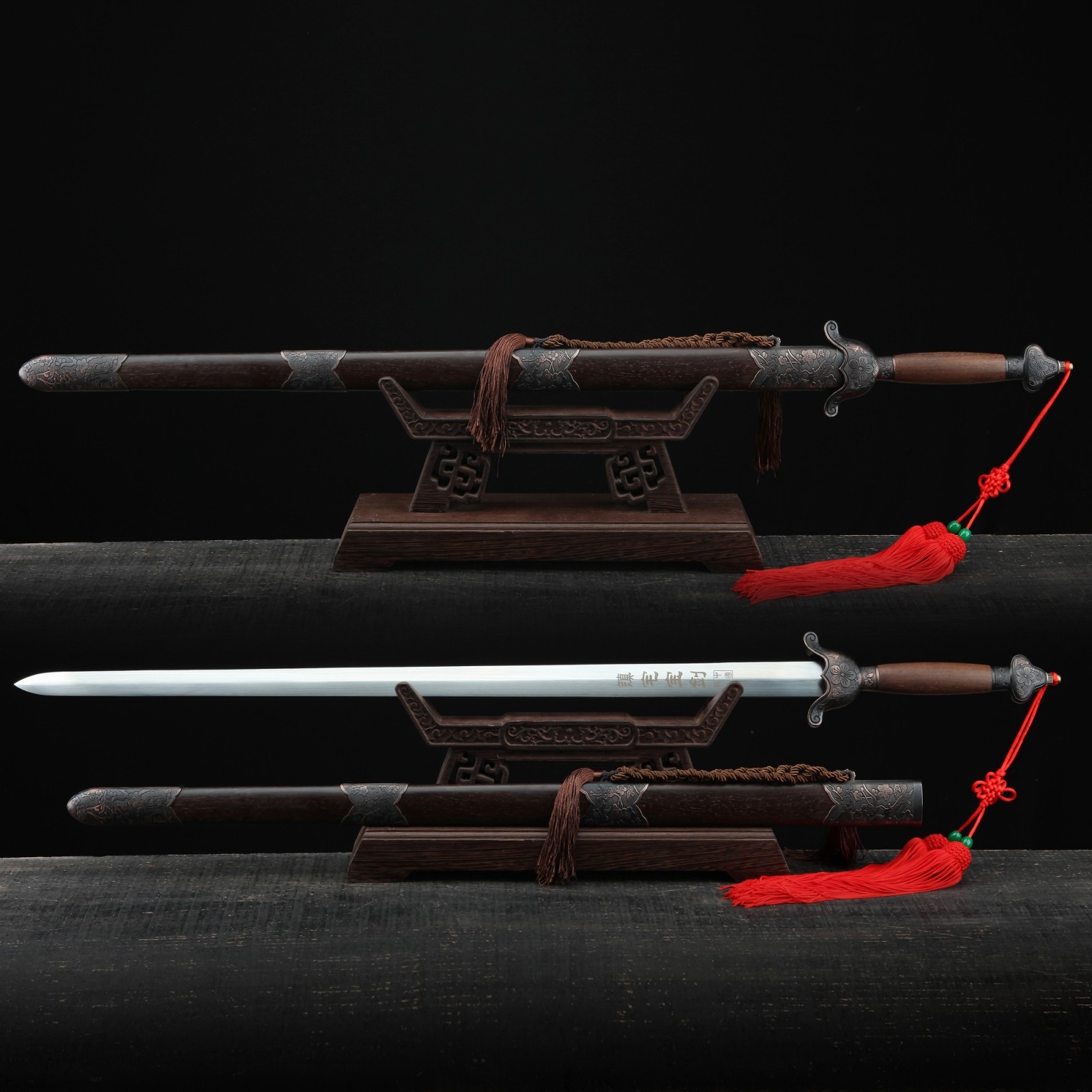 - Key features: real chinese swords, 1060 carbon steel, handmade, double edge sharp, full tang, sharpened, rosewood scabbard, real copper fittings