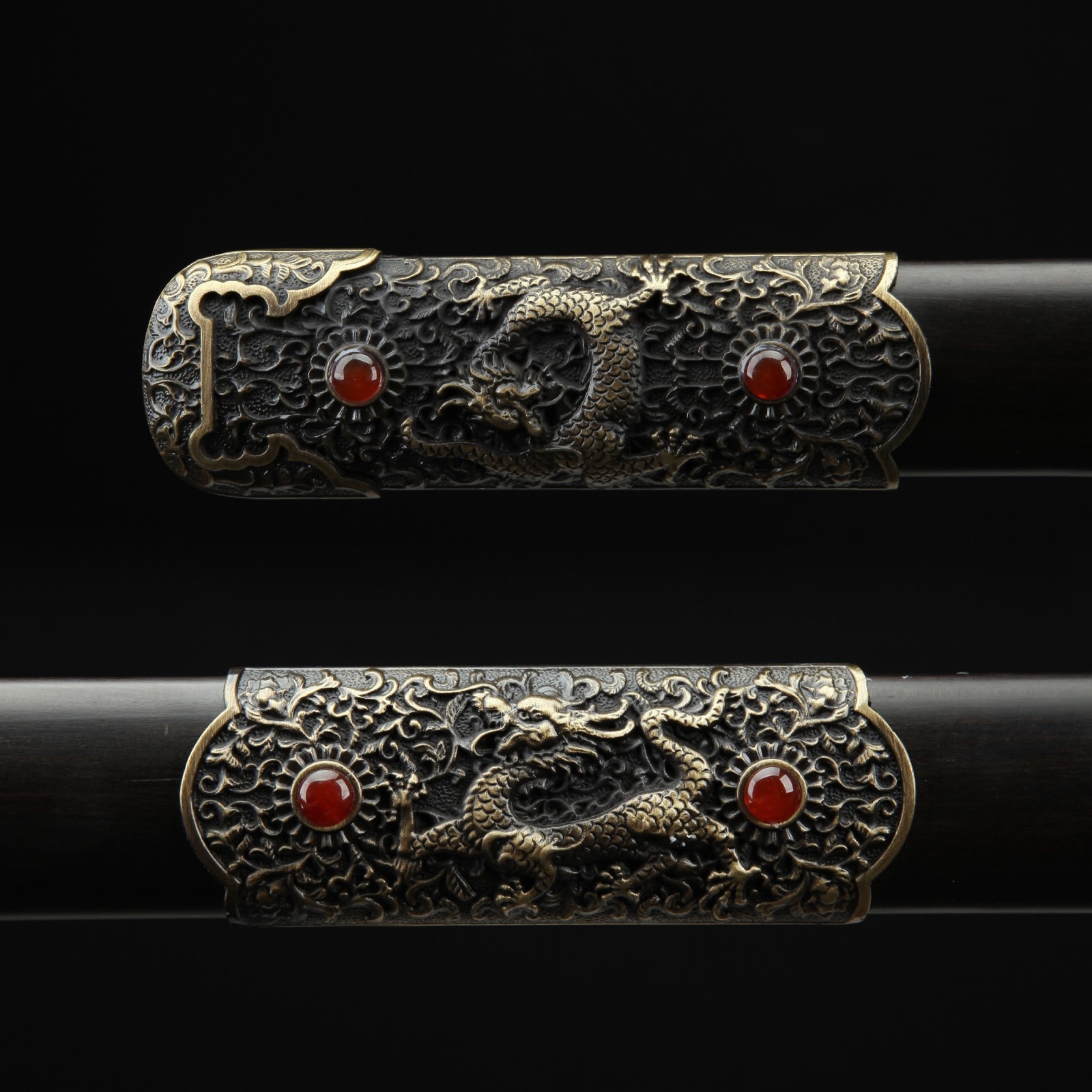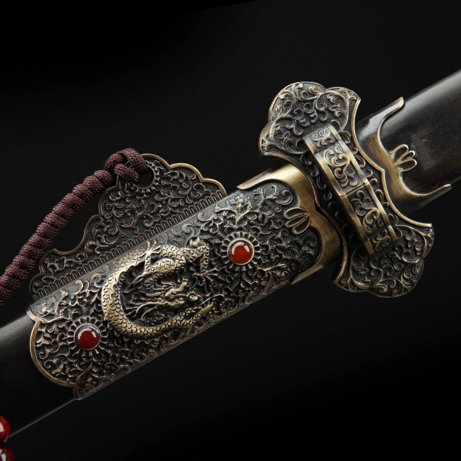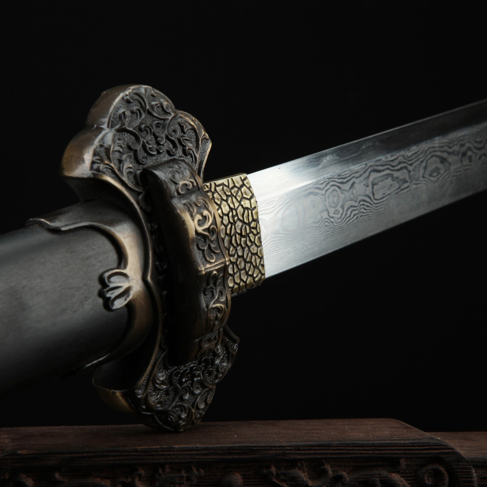 - Key features: real chinese swords, tang dynasty, damascus steel, clay tempered, handmade, full tang, sandalwood scabbard, real copper fittings, hand forged