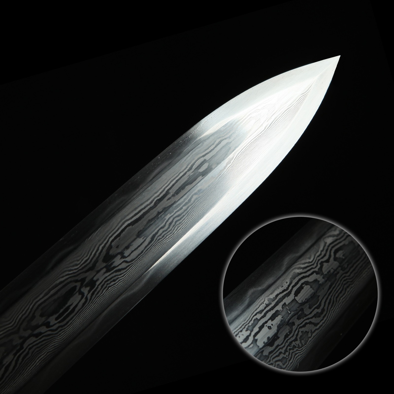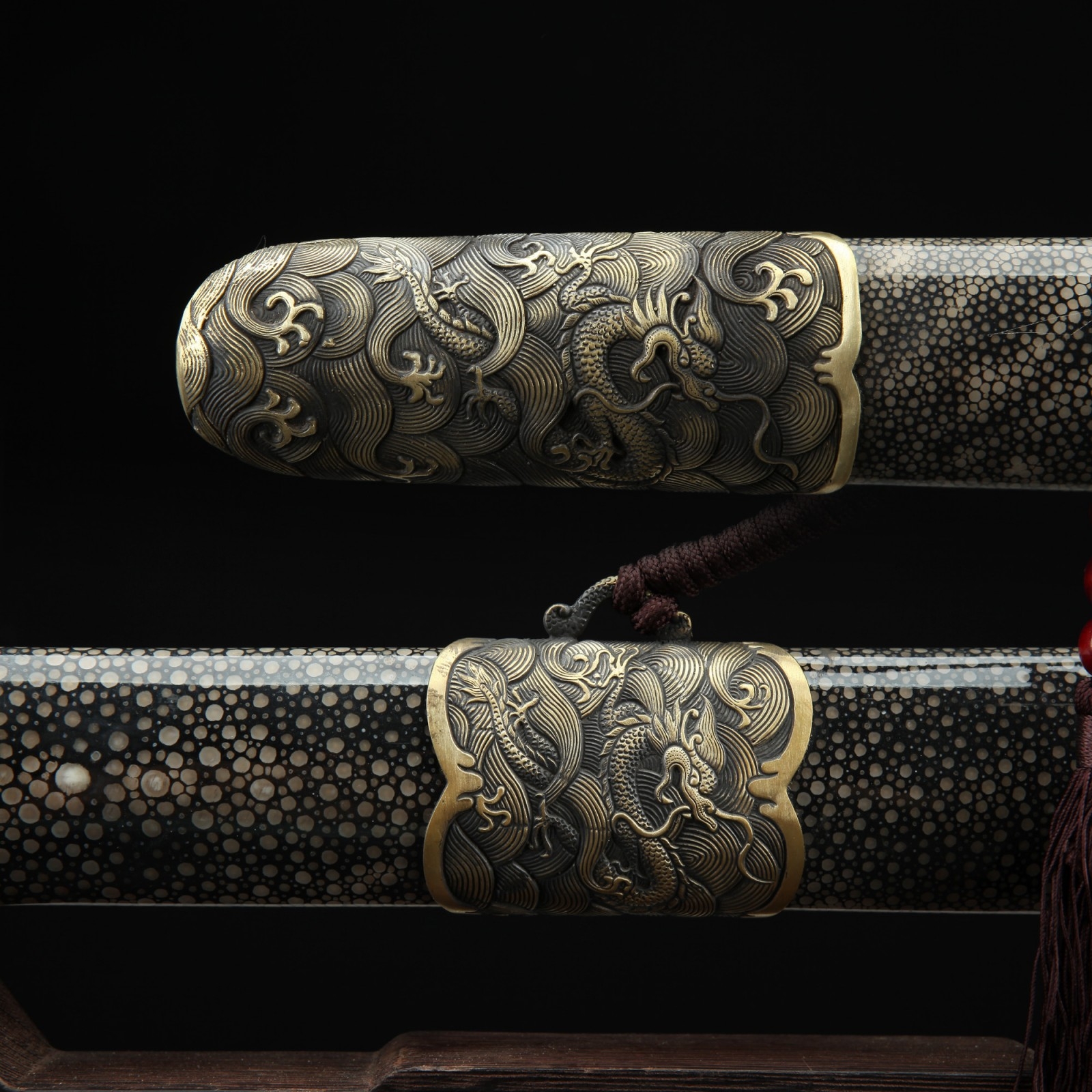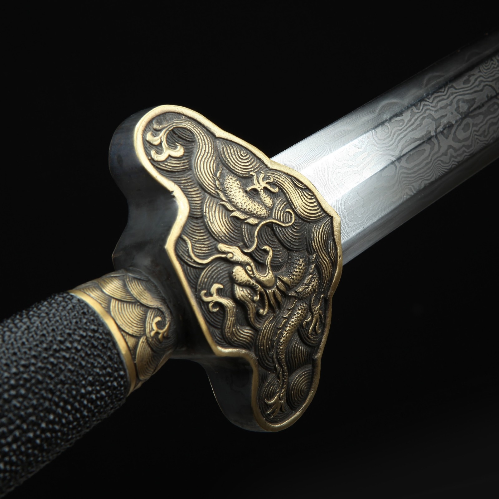 - Key features: real chinese swords, qing dynasty, damascus steel, clay tempered, handmade, full tang, hand forged, blade polished, sharpened, double edge sharp, real rayskin scabbard, real copper fittings