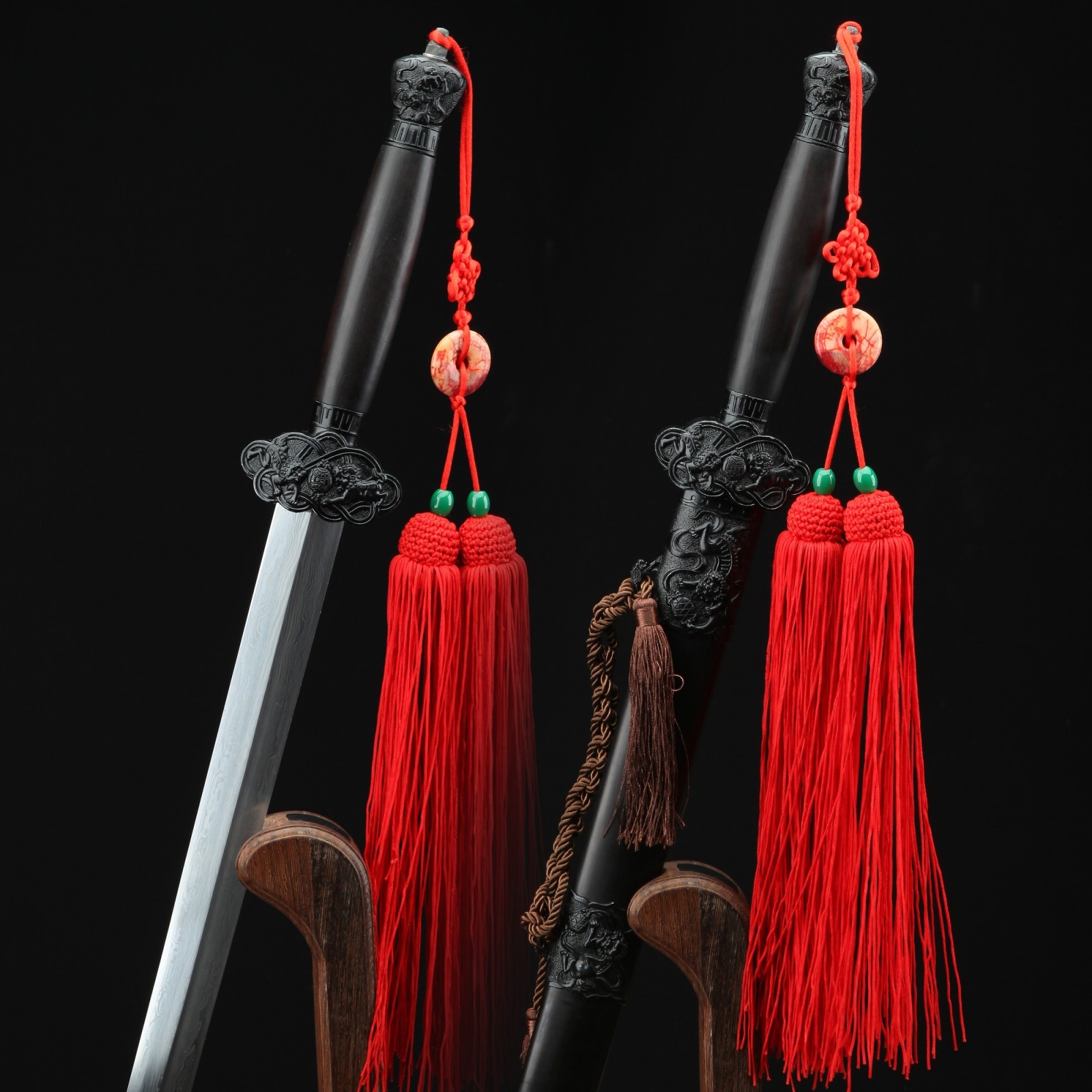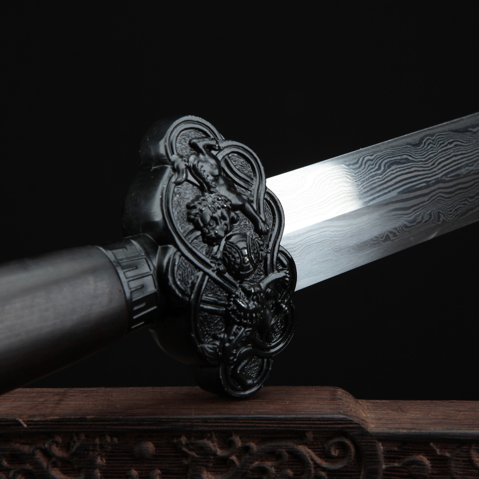 - Key features: qing dynasty, real chinese swords, damascus steel, blackwood scabbard, handmade, full tang, blade polished, sharpened, double edge sharp, alloy fittings