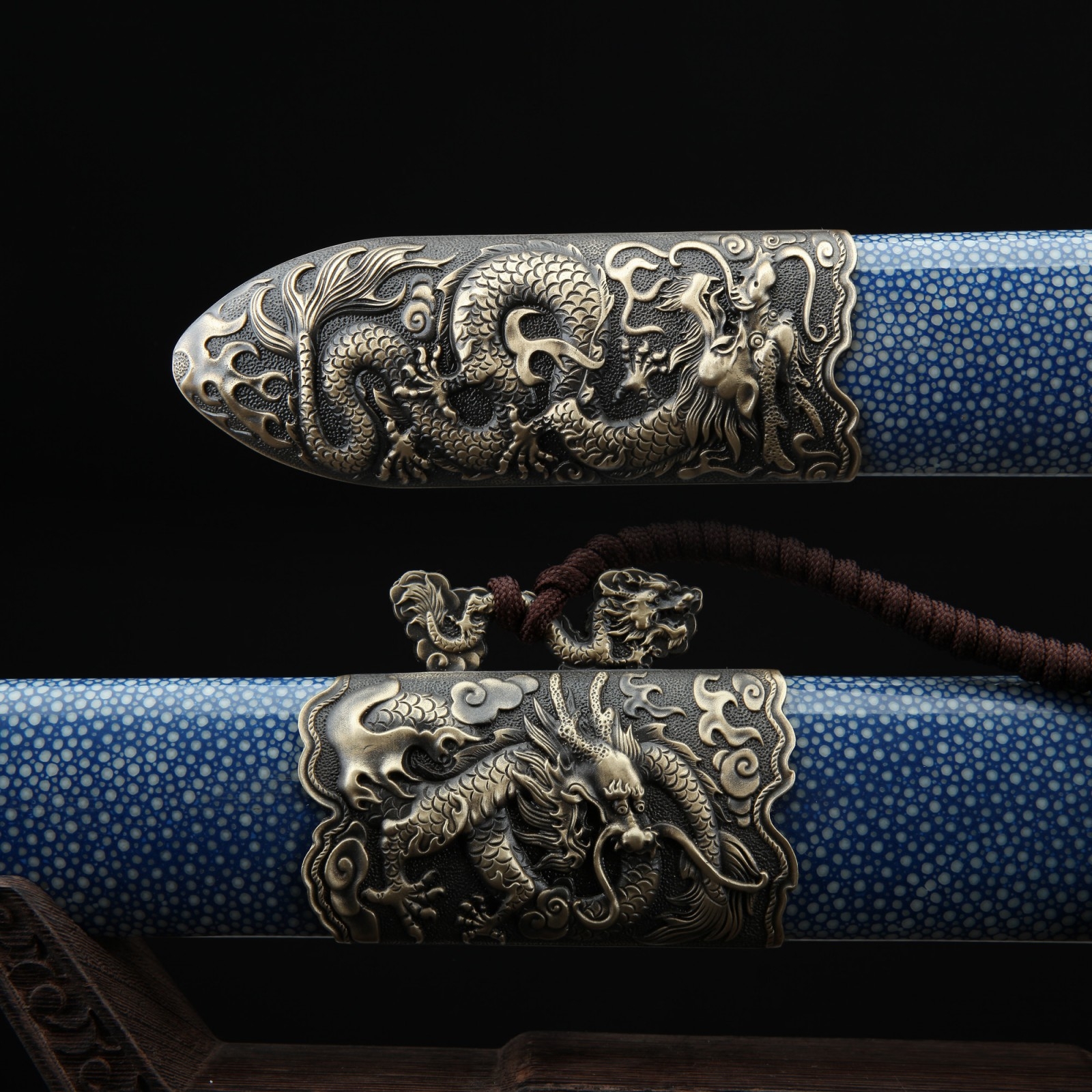 - Fully handmade real rayskin scabbard, premium real copper fittings, handsome color scheme.