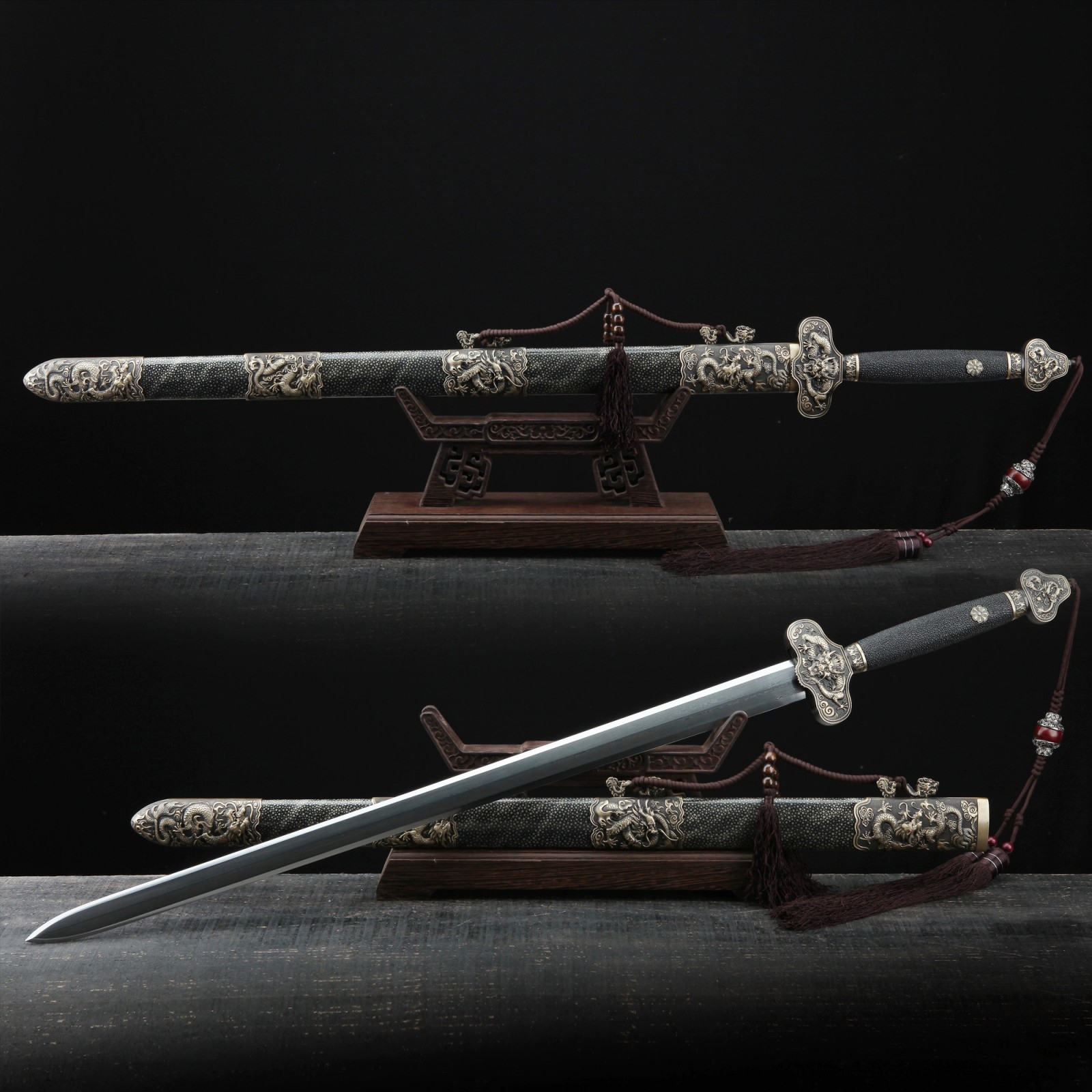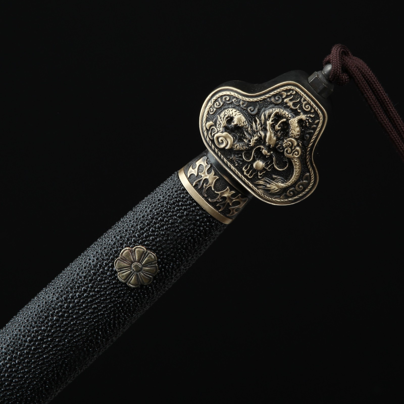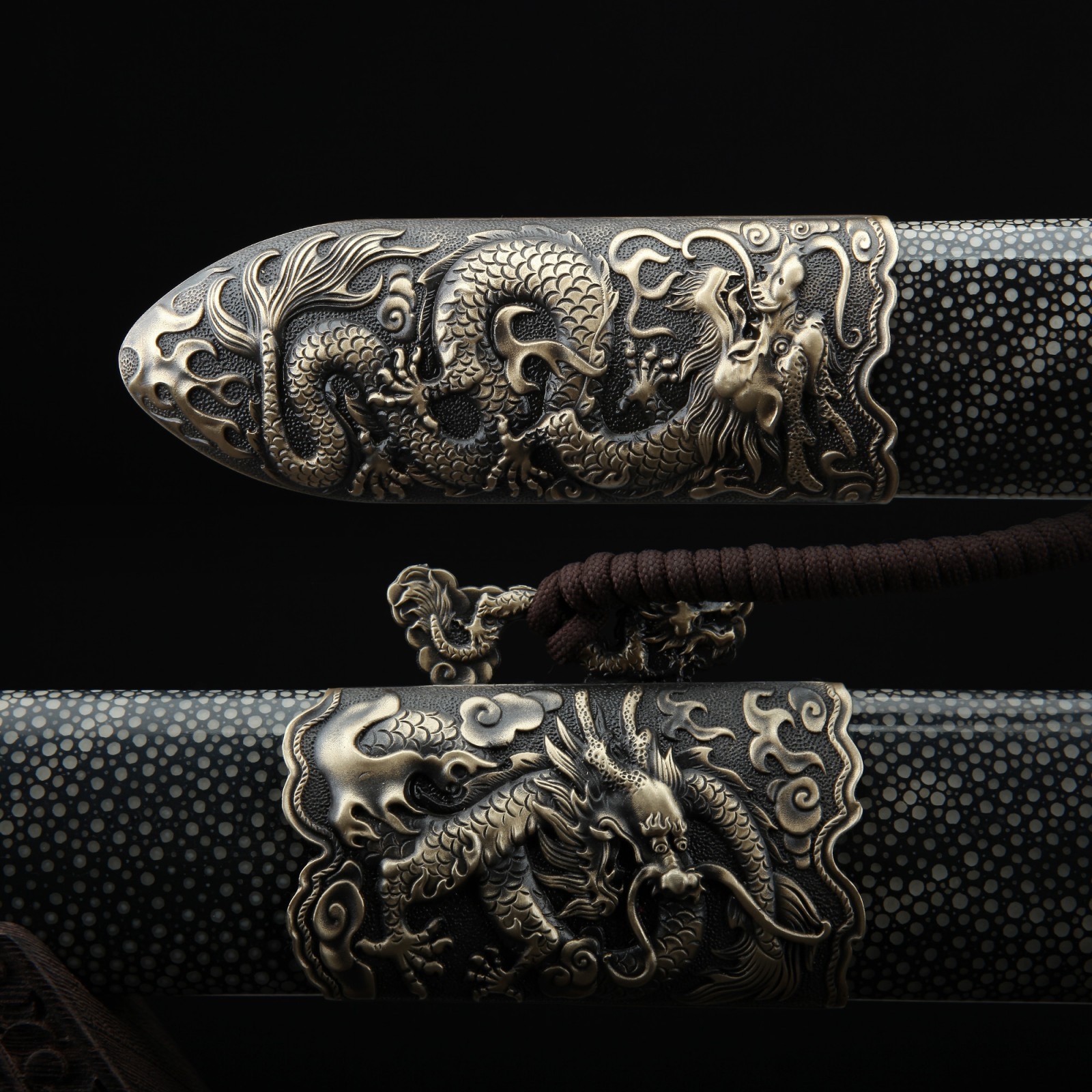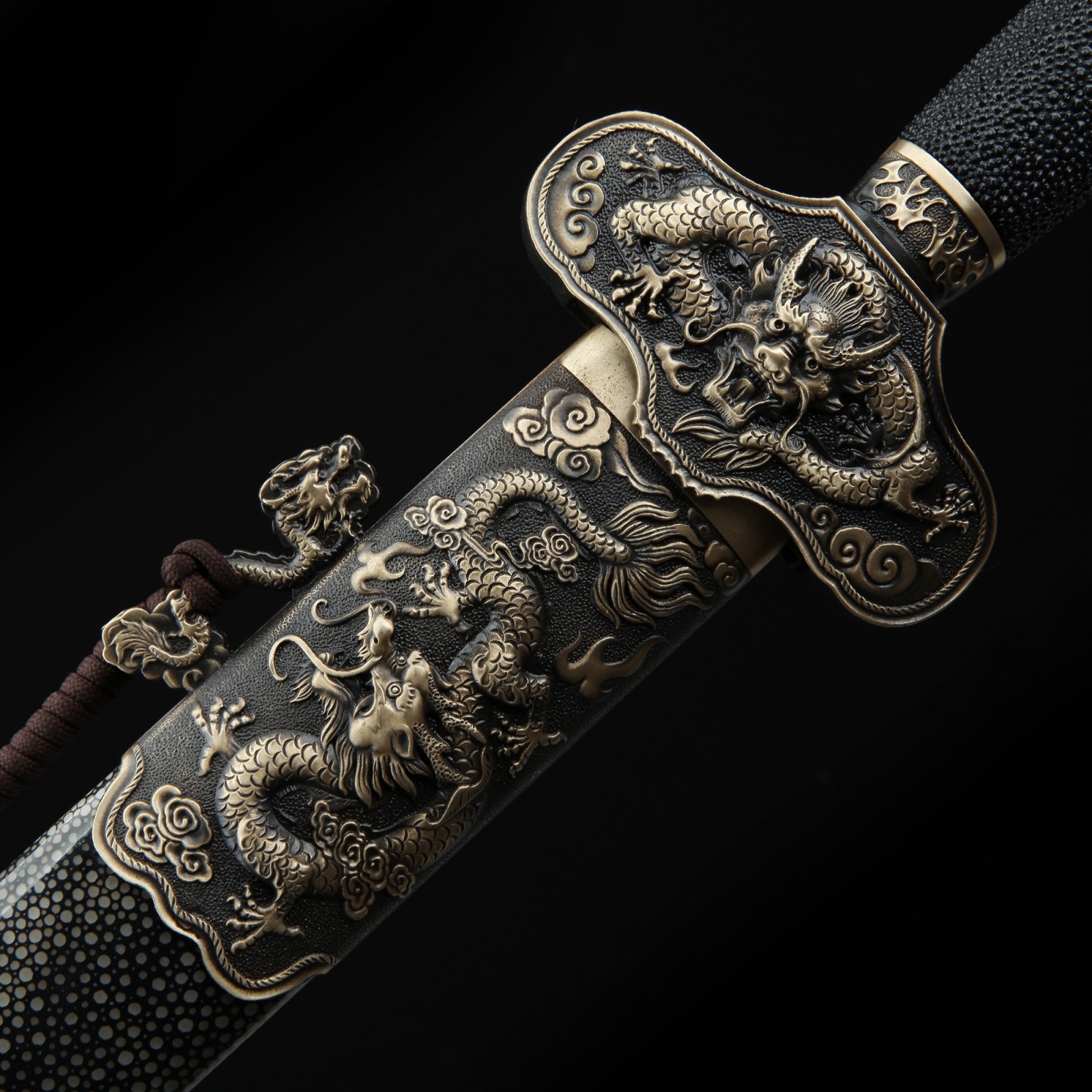 - Key features: qing dynasty, real chinese swords, damascus steel, real rayskin scabbard, full tang, hand forged, blade polished, sharpened, double edge sharp, real copper fittings