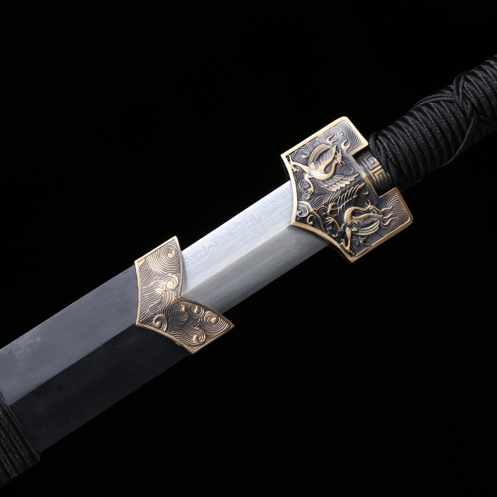 - Key features: handmade, real chinese swords, han dynasty, damascus steel, full tang, sharpened, double edge sharp, blackwood scabbard, real copper fittings