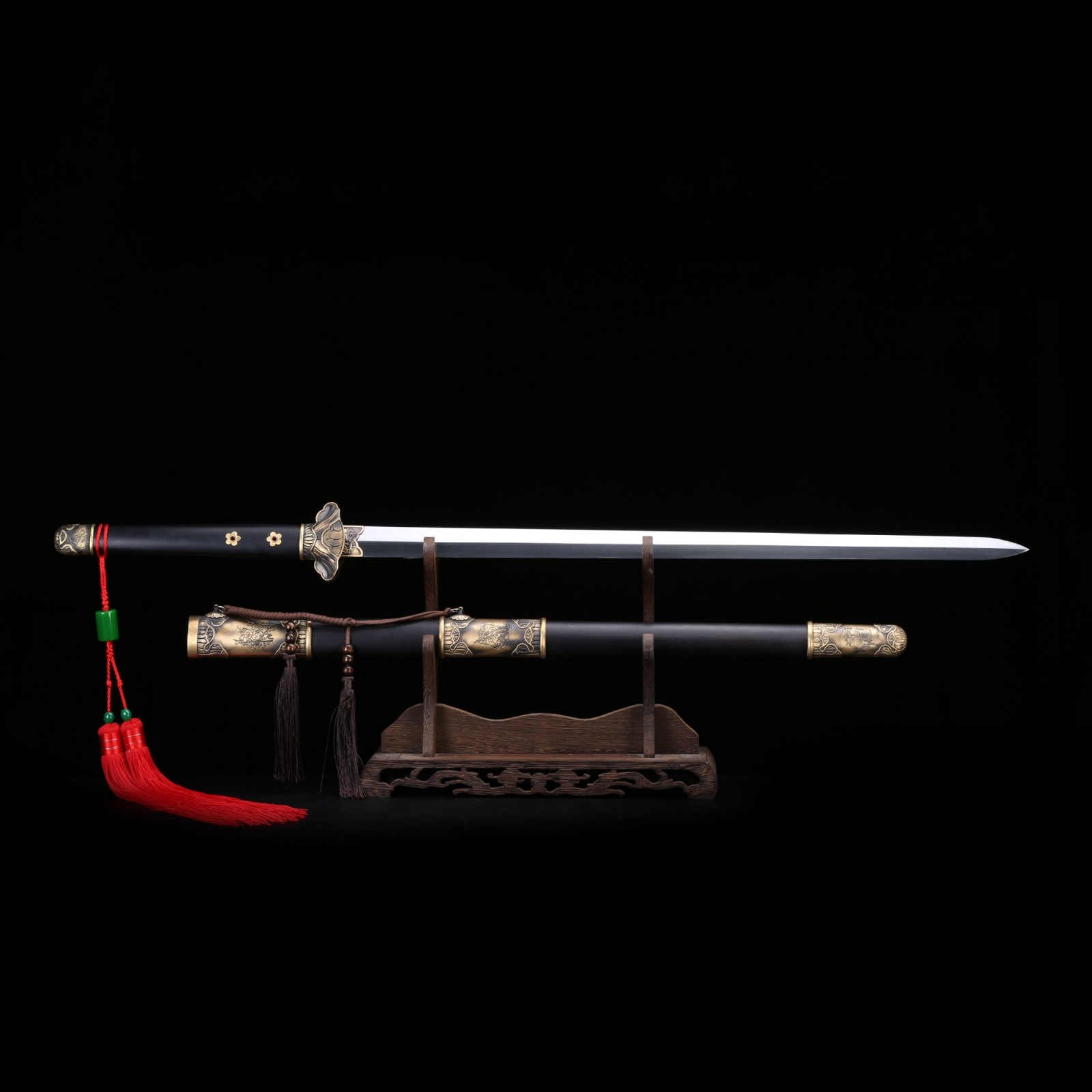 - Key features: real chinese swords, damascus steel, double edge sharp, handmade, blade polished, sharpened, blackwood scabbard, real copper fittings, tang dynasty